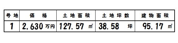 所在地 | 土地面積/坪数 | 総区画数 | 建物面積 | 建築年月 | 価格 |