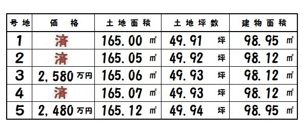 | 所在地 | 土地面積/坪数 | 総区画数 | 建物面積 | 建築年月 | 価格 |