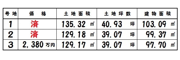 | 所在地 | 土地面積/坪数 | 総区画数 | 建物面積 | 建築年月 | 価格 |