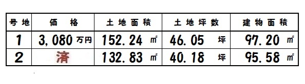 | 所在地 | 土地面積/坪数 | 総区画数 | 建物面積 | 建築年月 | 価格 |