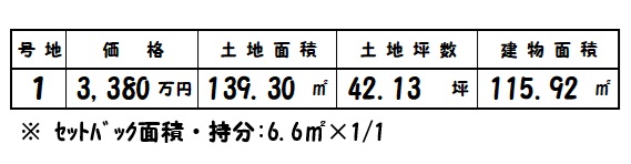 | 所在地 | 土地面積/坪数 | 総区画数 | 建物面積 | 建築年月 | 価格 |