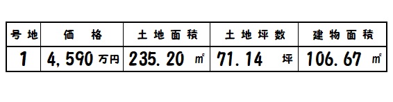 | 所在地 | 土地面積/坪数 | 総区画数 | 建物面積 | 建築年月 | 価格 |