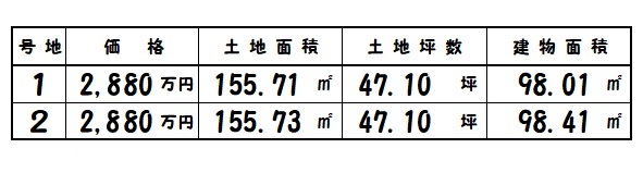 大和郡山市九条町 155.71㎡~/47.10坪 2 98.01㎡~ R7.9完成 2,880万円