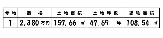 | 所在地 | 土地面積/坪数 | 総区画数 | 建物面積 | 建築年月 | 価格 |