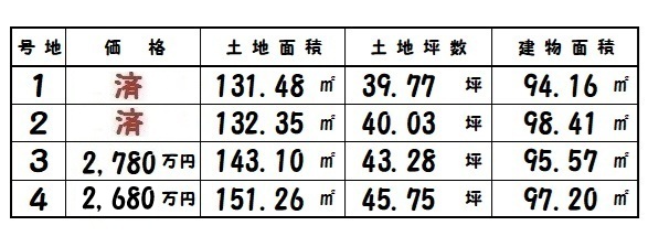 | 橿原市大久保町 | 131.48㎡~/39.77坪~ | 4 | 94.16㎡~ | R8.3 | 2,680万円~ |