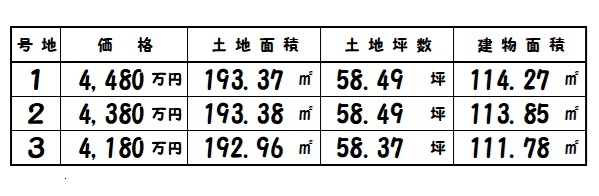 | 奈良市西大寺新池町 | 192.96㎡~/58.37坪~ | 3 | 111.78㎡~ | R8.6完成予定 | 4,180万円~ |