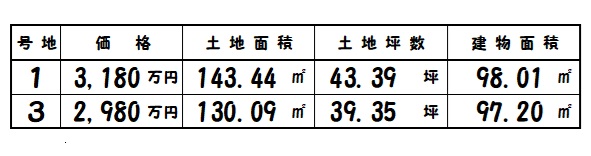 | 天理市別所町 | 130.09㎡~/39.35坪~ | 3 | 97.20㎡~ | R7.11 | 2,980万円~ |