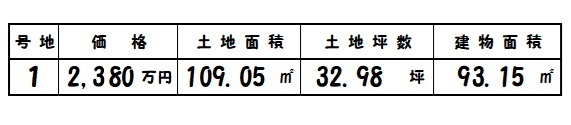 | 所在地 | 土地面積/坪数 | 総区画数 | 建物面積 | 建築年月 | 価格 |