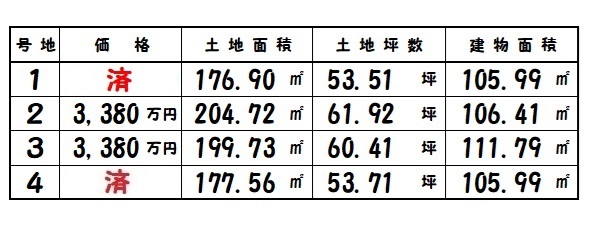 奈良市七条西町1丁目 176.90㎡~/53.51坪~ 4 105.99㎡~ R7.12 3,380万円