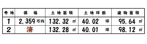 所在地 | 土地面積/坪数 | 総区画数 | 建物面積 | 建築年月 | 価格 |