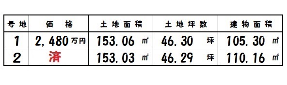 | 所在地 | 土地面積/坪数 | 総区画数 | 建物面積 | 建築年月 | 価格 |