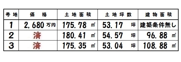 所在地 | 土地面積/坪数 | 総区画数 | 価格 |