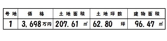 | 所在地 | 土地面積/坪数 | 総区画数 | 建物面積 | 建築年月 | 価格 |