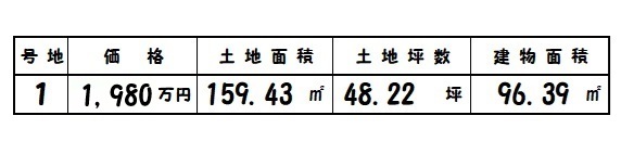 | 所在地 | 土地面積/坪数 | 総区画数 | 建物面積 | 建築年月 | 価格 |