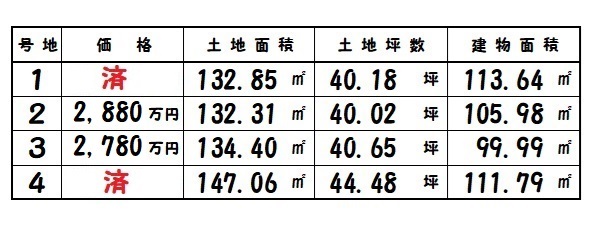 | 所在地 | 土地面積/坪数 | 総区画数 | 建物面積 | 建築年月 | 価格 |