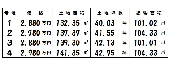 | 桜井市三輪 | 132.35㎡~/40.03坪~ | 4 | 101.01㎡~ | R7.9(2.3号地R7.10予定) | 2,780万円~ |