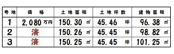 御所市東辻 | 150.25㎡~/45.45坪~ | 3 | 96.38㎡~ | R7.7 | 2,080万円 |