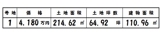 所在地 | 土地面積/坪数 | 総区画数 | 建物面積 | 建築年月 | 価格 |