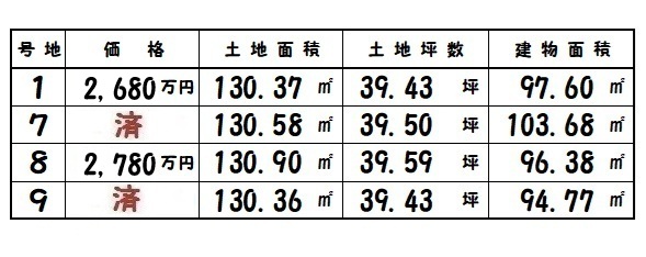 | 所在地 | 土地面積/坪数 | 総区画数 | 建物面積 | 建築年月 | 価格 |