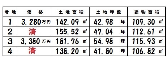 | 所在地 | 土地面積/坪数 | 総区画数 | 建物面積 | 建築年月 | 価格 |