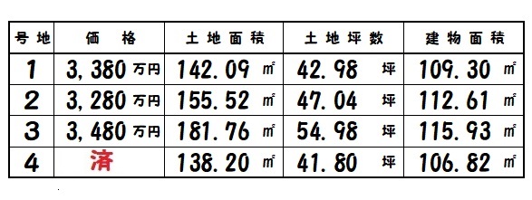 所在地 | 土地面積/坪数 | 総区画数 | 建物面積 | 建築年月 | 価格 |