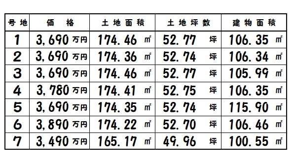 所在地 | 土地面積/坪数 | 総区画数 | 建物面積 | 建築年月 | 価格 |
