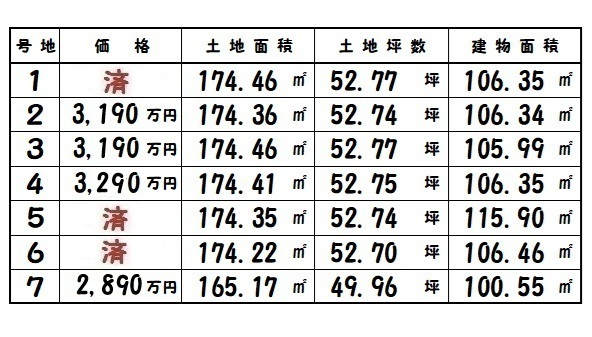 | 所在地 | 土地面積/坪数 | 総区画数 | 建物面積 | 建築年月 | 価格 |