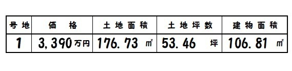 生駒市あすか野南3丁目 | 176.73㎡/53.46坪 | 1 | 106.81㎡ | R7.6完成 | 3,390万円 |