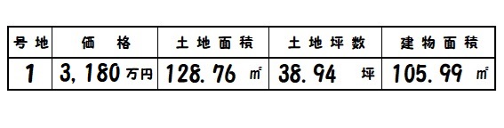 | 天理市田町 | 128.76㎡/38.94坪 | 1 | 105.99㎡ | R7.9完成 | 3,180万円 |
