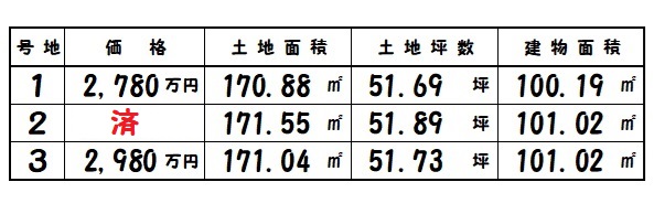 | 所在地 | 土地面積/坪数 | 総区画数 | 建物面積 | 建築年月 | 価格 |