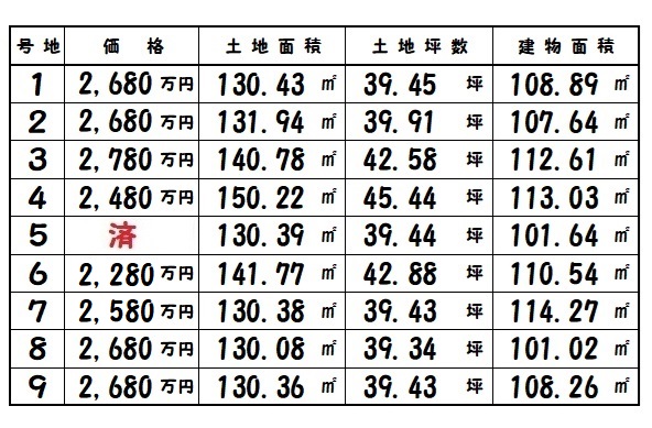 | 所在地 | 土地面積/坪数 | 総区画数 | 建物面積 | 建築年月 | 価格 |