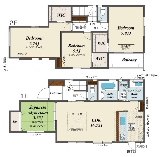 構造 | 木造軸組構法(在来工法) | 階建て | 2階建て | 間取り詳細 | 洋4・LDK1 |