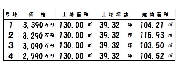 奈良市杏町 | 130.00㎡/39.32坪 | 4 | 103.50㎡ | R7.10完成予定 | 2,790万円~ |