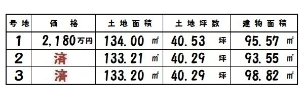 | 所在地 | 土地面積/坪数 | 総区画数 | 建物面積 | 建築年月 | 価格 |