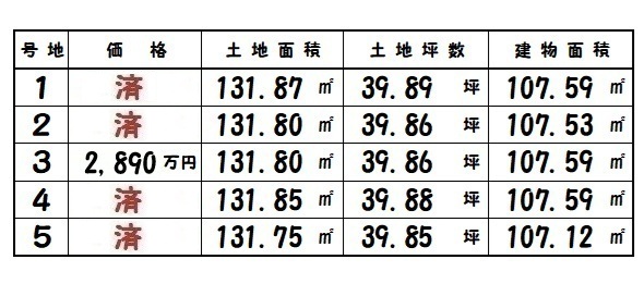 | 磯城郡川西町結崎 | 131.75㎡~/39.85坪~ | 5 | 107.12㎡~ | R7.11 | 2,890万円 |