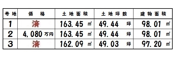 | 所在地 | 土地面積/坪数 | 総区画数 | 建物面積 | 建築年月 | 価格 |