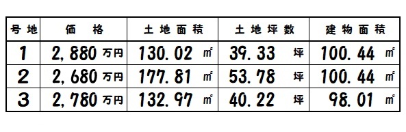 | 奈良市東九条町 | 130.02㎡~/39.33坪~ | 3 | 98.01㎡~ | R7.12完成予定 | 2,680万円~ |