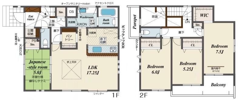 構造 | 木造軸組構法(在来工法) | 階建て | 2階建て | 間取り詳細 | 洋4・LDK1 |
