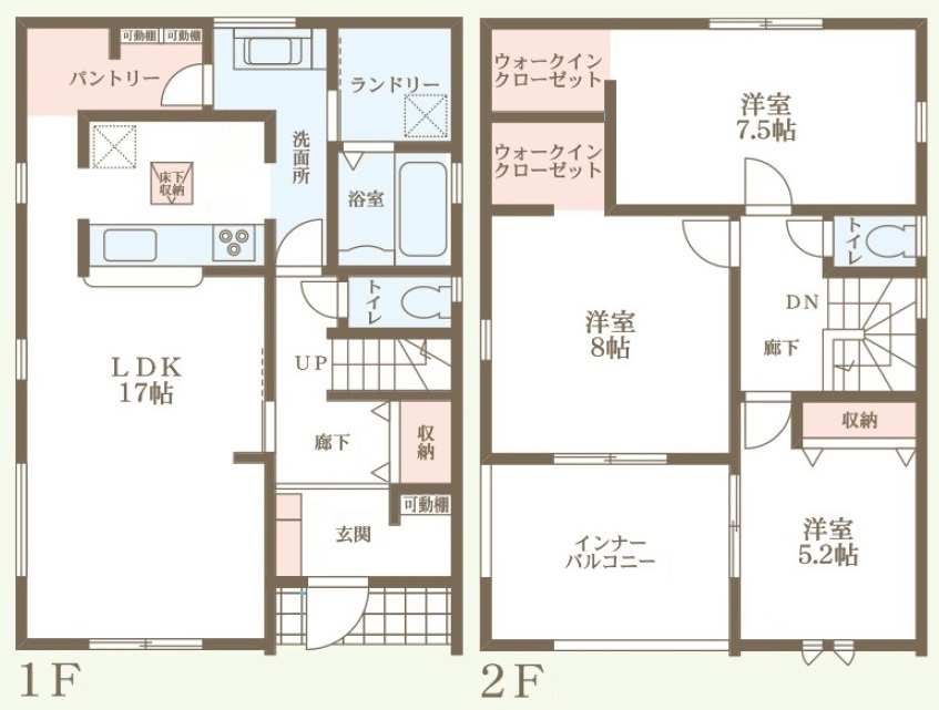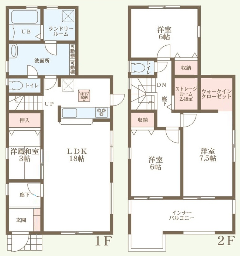 構造 木造軸組構法(在来工法) 階建て 2階建て 間取り詳細 洋3・LDK1