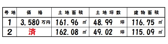 | 所在地 | 土地面積/坪数 | 総区画数 | 建物面積 | 建築年月 | 価格 |