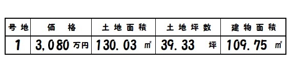 | 所在地 | 土地面積/坪数 | 総区画数 | 建物面積 | 建築年月 | 価格 |