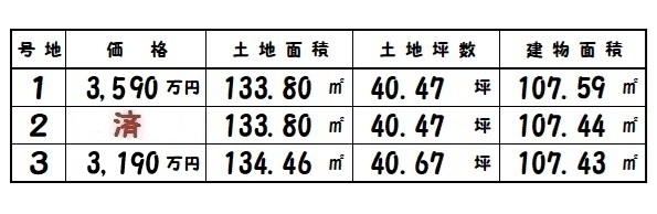 | 所在地 | 土地面積/坪数 | 総区画数 | 建物面積 | 建築年月 | 価格 |