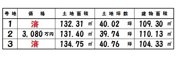 | 所在地 | 土地面積/坪数 | 総区画数 | 建物面積 | 建築年月 | 価格 |