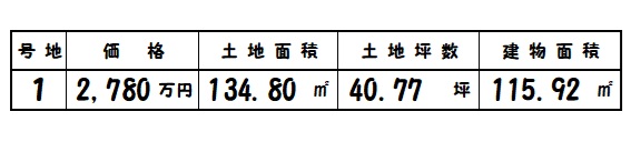 | 所在地 | 土地面積/坪数 | 総区画数 | 建物面積 | 建築年月 | 価格 |