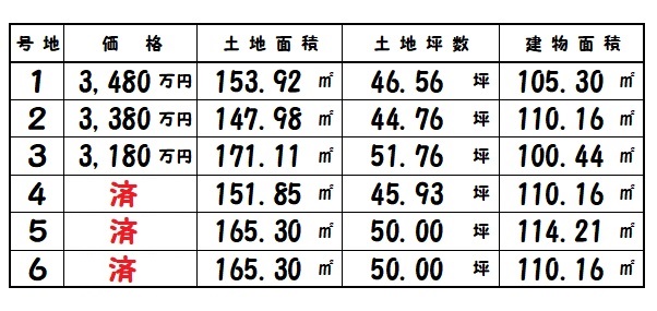 | 橿原市城殿町 | 147.98㎡~/44.76坪~ | 6 | 100.44㎡~ | R8.5完成予定 | 3,180万円~ |
