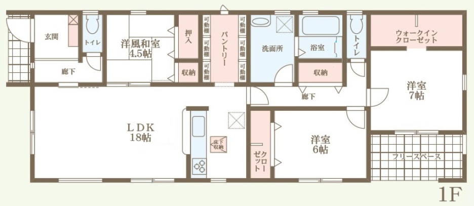 構造 木造軸組構法(在来工法) 階建て 平屋 間取り詳細 洋3・LDK1