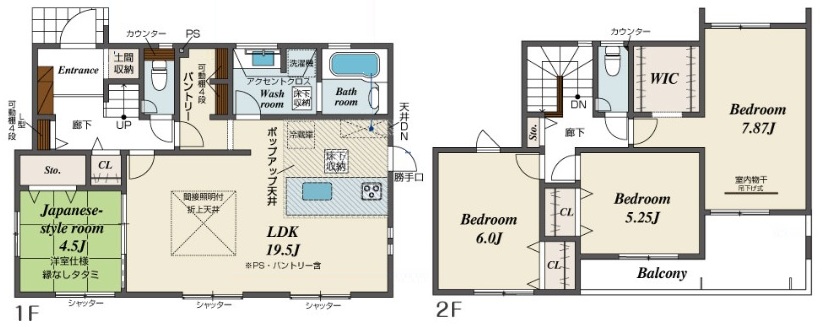 構造 木造軸組構法(在来工法) 階建て 2階建て 間取り詳細 洋3・和1・LDK1