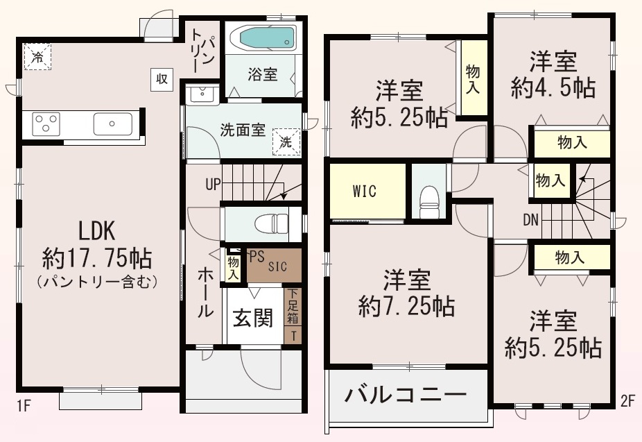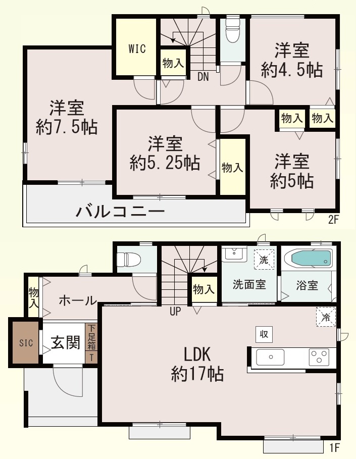 構造 木造軸組構法(在来工法) 階建て 2階建て 間取り詳細 洋4・LDK1