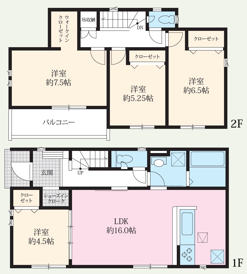 構造 木造軸組構法(在来工法) 階建て 2階建て 間取り詳細 洋4・LDK1