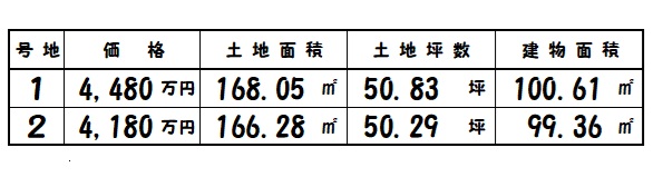 | 所在地 | 土地面積/坪数 | 総区画数 | 建物面積 | 建築年月 | 価格 |